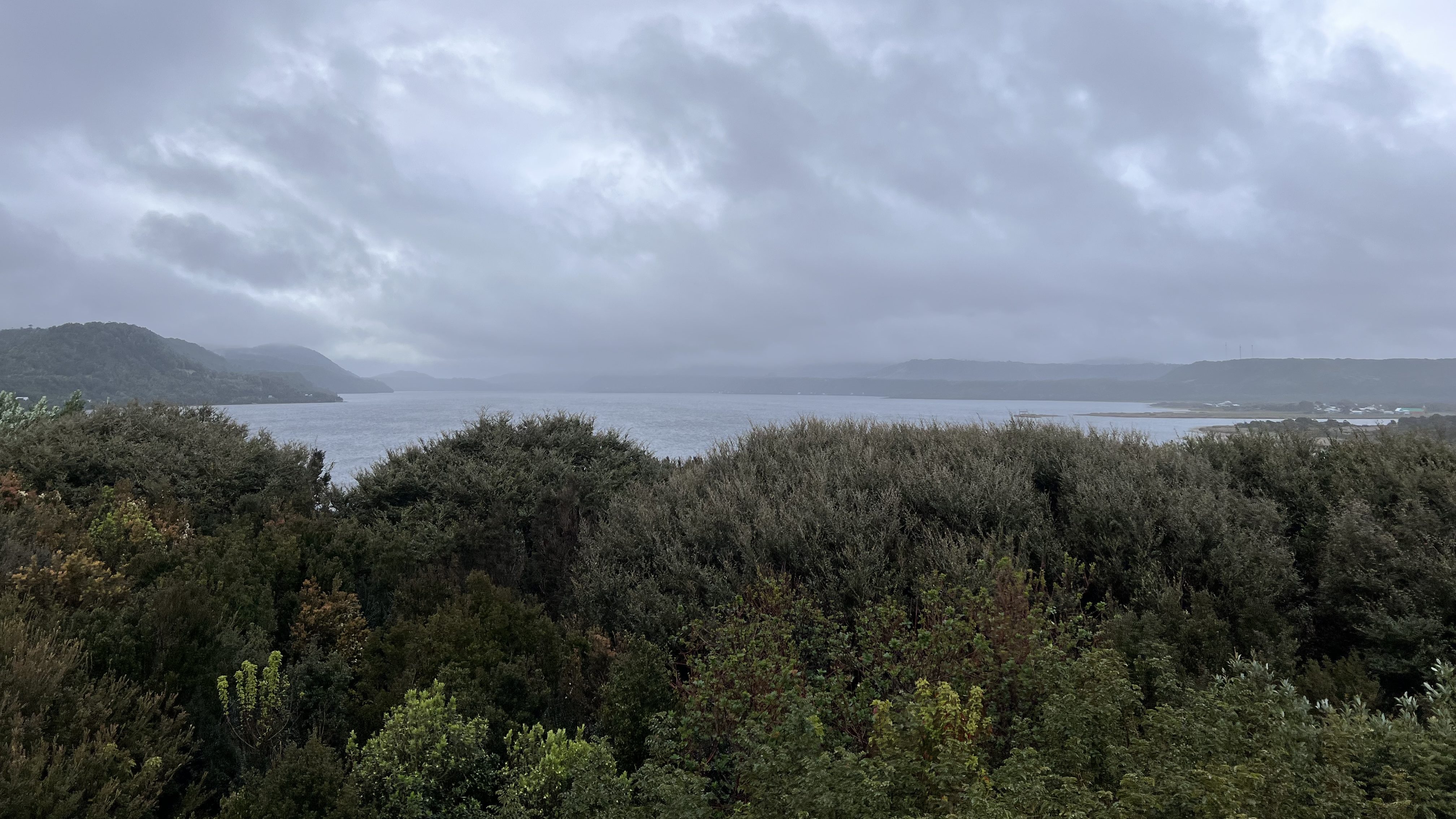 Jedenfalls habe ich am frühen Morgen den ersten Bus von Castro zum Nationalpark Chiloé genommen. Castro liegt an der östlichen Küste, der Nationalpark genau auf der anderen Seite, am westlichen Ufer. Bei solch schönen Ausblicken aus dem Fenster vergeht so eine Fahrt aber recht schnell. Im Parque Nacional gibt es dann verschieden lange Wanderwege. Ich habe mich für den längsten entschieden, den ich in der geringen Zeit zurücklegen konnte.