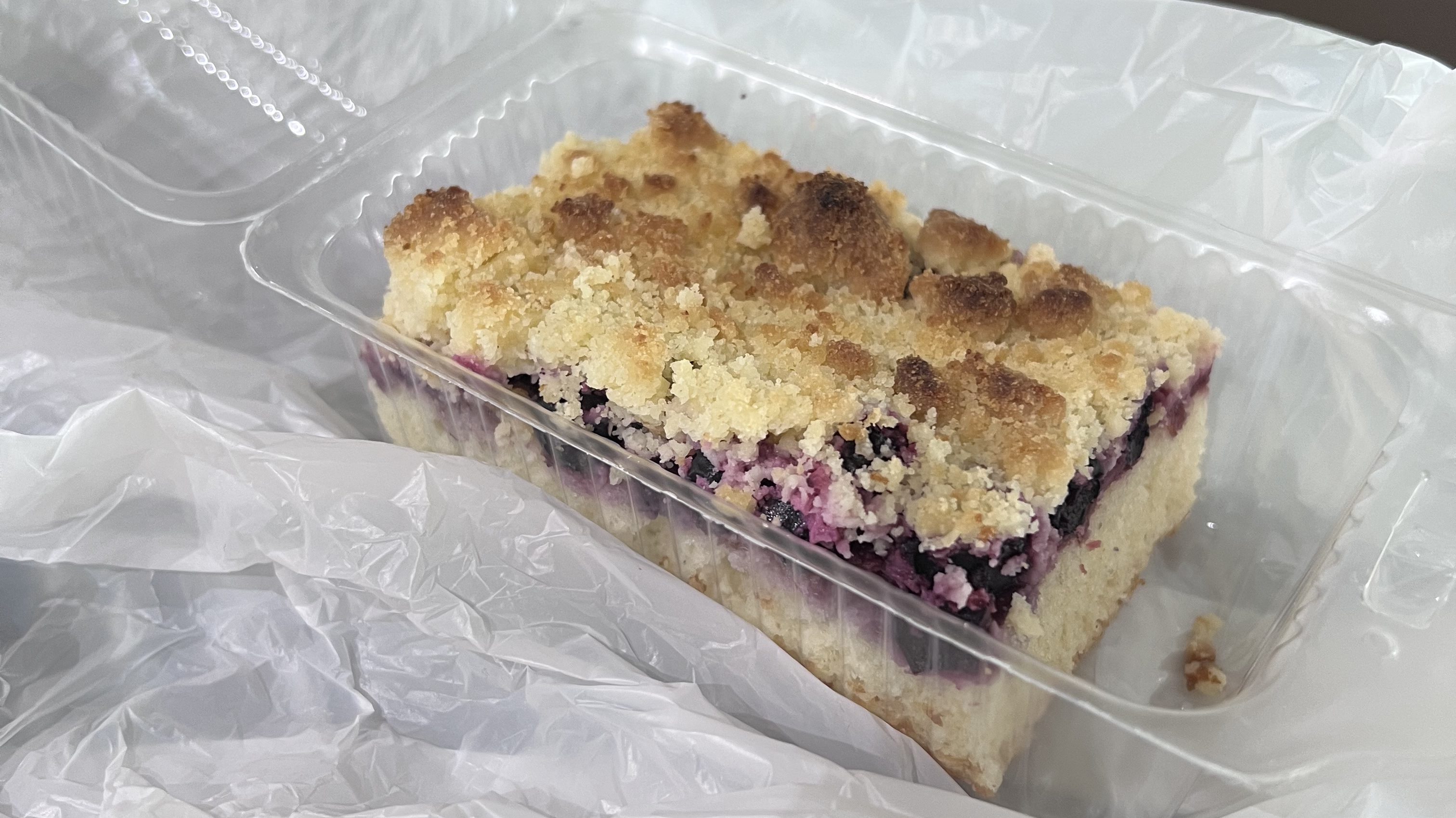 Zum Glück hatte ich am Terminal in Puerto Montt aber noch etwas Zeit. Eine Sache fehlte nämlich noch. Streuselkuchen. Bei einem Backshop am Terminal kaufte ich mir ein Stück Beeren-Streuselkuchen, den ich dann in aller Ruhe genießen konnte. Und mit geschlossenen Augen hätt ich fast gedacht, dass ich Zuhause in Österreich am Küchentisch sitze mit einem Stück selbstgebackenem Blechkuchen von der Mama im Mund.