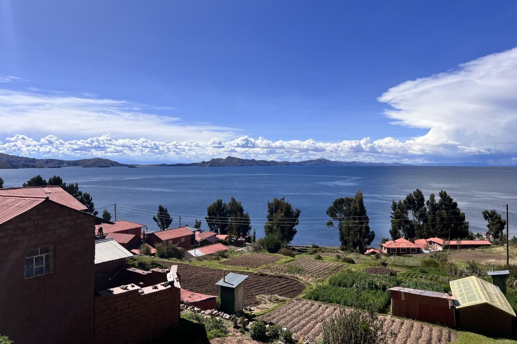 Auf der Inseln Llachon angekommen, ging es über einen kurzen Weg den Hügel hinauf zu einem kleinen Restaurant mit tollem Ausblick auf den See. Dort wurden wir mit leckerem Fisch verköstigt.